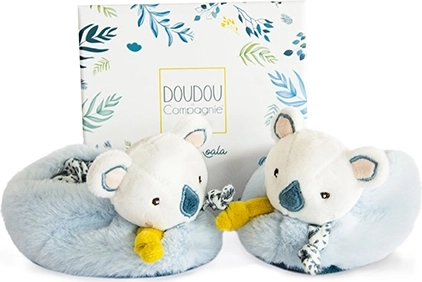 Roztomilé plyšové topánočky s motívom koaly v darčekovej krabičke sú ideálnym darčekom pre novorodencov. Hrkálkajúce topánočky udržiavajú detské nožičky teplé a prinášajú do oblečenia nádych fantázie.