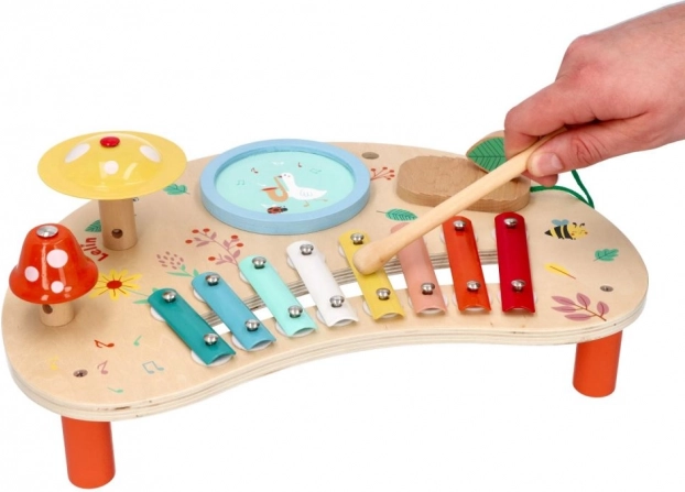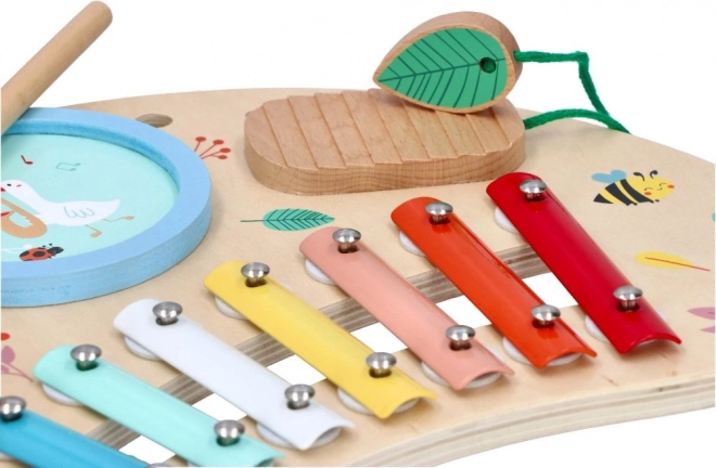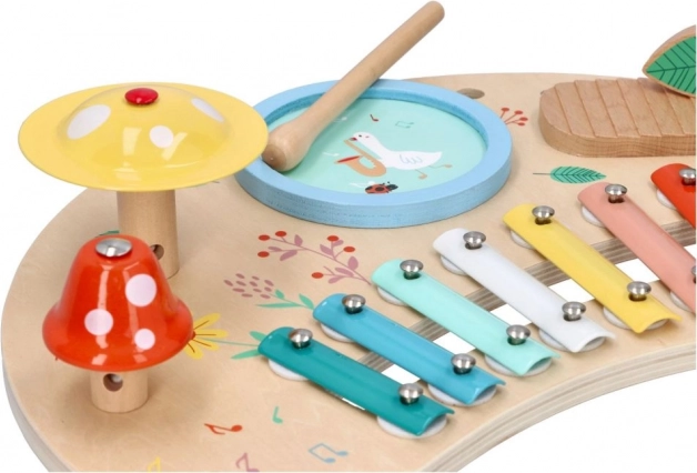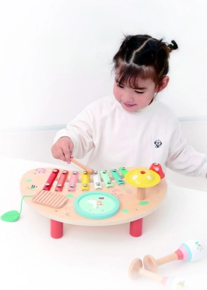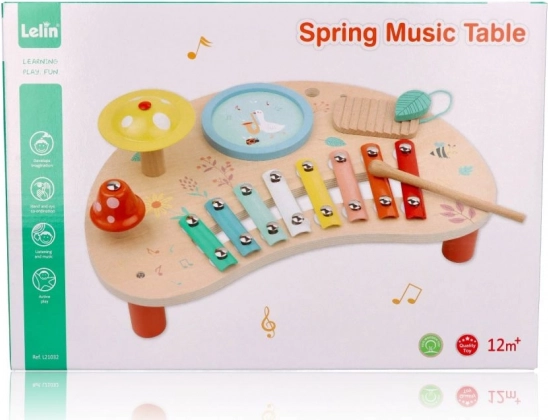 Jarný hudobný stolík je skvelou voľbou pre rodičov, ktorí chcú podporiť hudobný rozvoj svojich detí. Tento drevený stolík obsahuje farebné kovové klávesy, bubienok a ďalšie interaktívne komponenty, ktoré zabezpečujú hodiny zábavy. Drevený podstavec s veselými ilustráciami kvetín a zvierat vytvára prívetivú atmosféru pre každé dieťa.