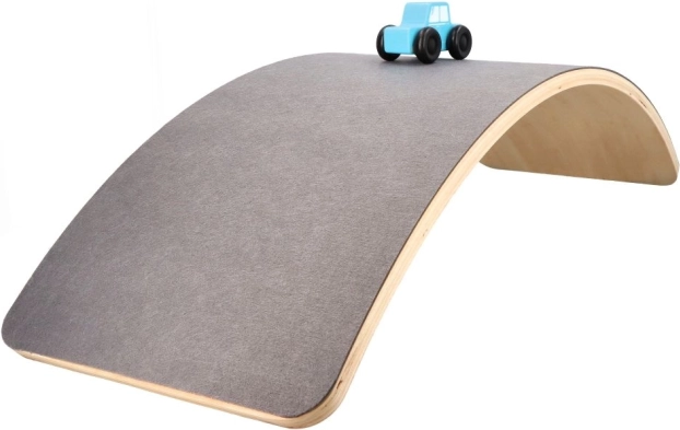 Táto rovnovážna doska je ideálnou pomôckou pre cvičenie rovnováhy, posilnenie stredu tela a poskytuje nekonečné množstvo herných možností. Vďaka jej špeciálnemu dizajnu s filcom a priloženým dreveným autíčkom s motívom cesty je nielen skvelou pomôckou pre fyzickú aktivitu, ale aj štýlovým doplnkom do detskej izby či herne.