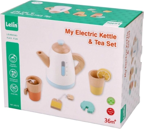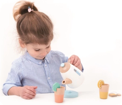 Pomôžte deťom rozvíjať ich sociálne a motorické zručnosti s drevenou čajovou súpravou, ktorá je ideálna pre imaginatívnu hru. Vhodná pre deti od 3 rokov, táto súprava obsahuje kanvicu a hrnčeky, ktoré sú navrhnuté v prírodných a pastelových farbách pre atraktívny vzhľad. Vytvorte si vlastné čajové párty a zábavné chvíle s priateľmi či rodinou.