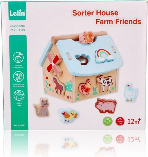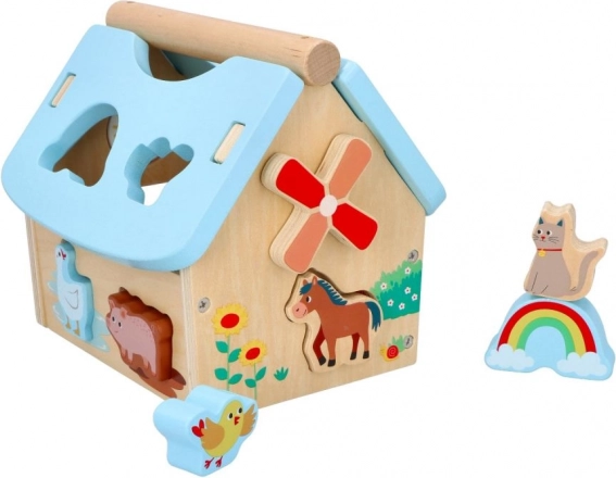 Tento drevený domček so zvieratkami je perfektnou hračkou pre rozvoj detí od 12 mesiacov. Je navrhnutý tak, aby deti inšpiroval k učeniu prostredníctvom hry. Domček obsahuje rôzne farebné tvary a zvieracie figúrky, ktoré možno vkladať do zodpovedajúcich otvorov, čo zlepšuje koordináciu oka a ruky.