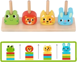 Podporujte u detí kľúčové zručnosti: trpezlivosť, logické myslenie a priestorovú predstavivosť. Vďaka pestrým farbám a rôznym tvarom je hra ideálna pre predškolákov od 18 mesiacov. V balení nájdete všetko potrebné pre okamžitú zábavu – spolu 27 dielov vrátane drevenej základne s kolíkmi a ilustračných kartičiek.