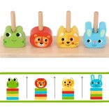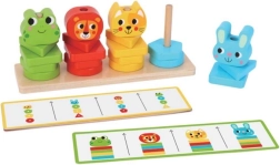 Táto rozkošná skladacia hra prináša zábavu aj učenie v jednom. Deti môžu ľubovoľne kombinovať farebné dieliky a vytvárať svoje obľúbené zvieracie postavičky alebo sa riadiť priloženými kartičkami s predlohami. Kvalitné spracovanie z FSC® dreva zaisťuje odolnosť a bezpečnosť pri každodennom hraní.