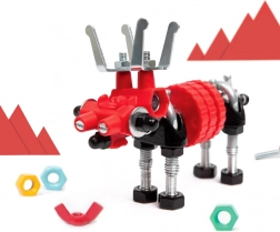 Farebné skrutky, matice a špeciálne konektory podporujú presnosť, trpezlivosť a radosť z objavovania konštrukcií.