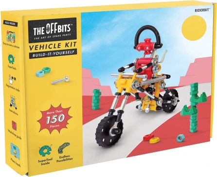 RiderBit od The OffBits je zábavná a vzdelávacia stavebnica, vďaka ktorej si deti postavia robota jazdiaceho na motorke a ďalšie modely. V balení nájdete viac než 200 kvalitných dielov, sadu kolies a šikovné spojovacie prvky, ktoré otvárajú dvere k originálnym nápadom a experimentovaniu.