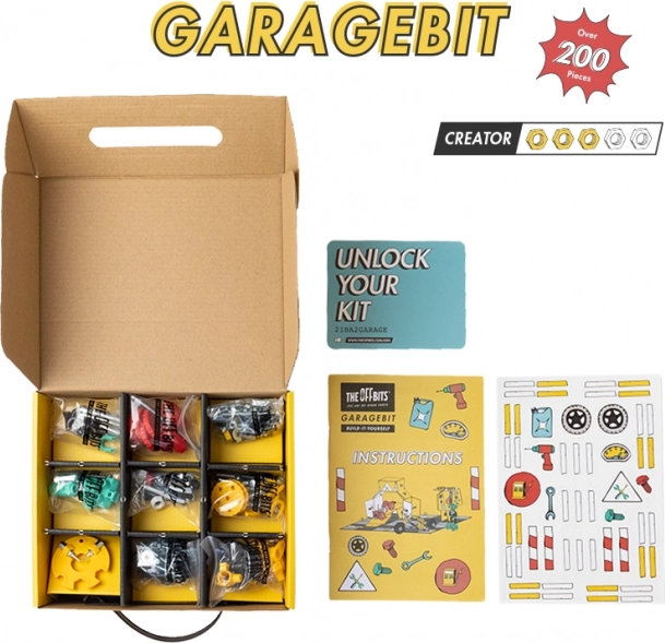 So stavebnicou GarageBit od OffBits posuniete stavanie na novú úroveň s možnosťou pretekať do garáže, opravovať autá alebo dokonca natankovať! Táto stavebnica s viac než 200 dielmi poskytuje nekonečné možnosti pre rôznorodé modely a rozvoj kreativity.