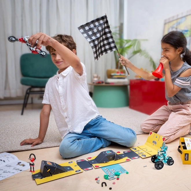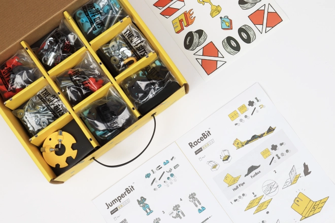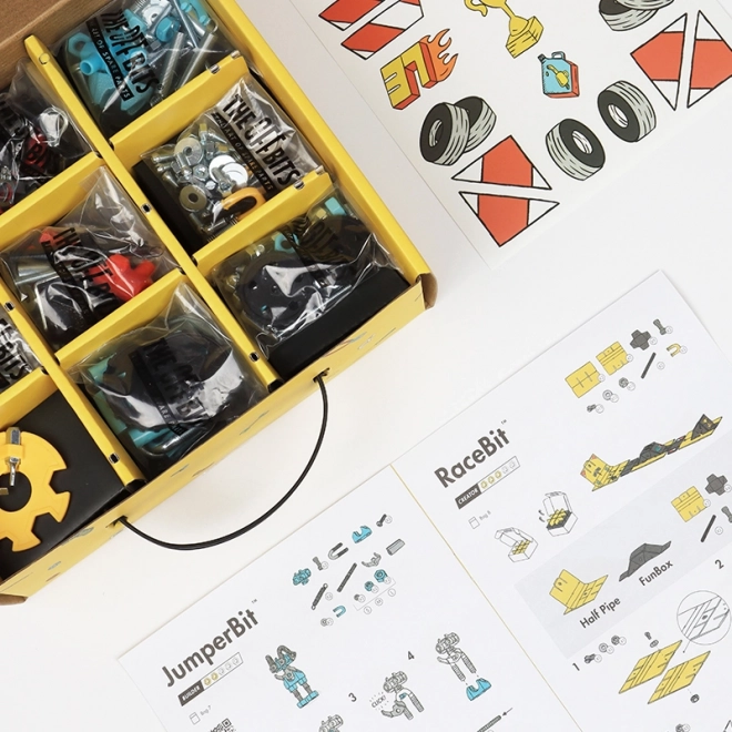 Vydajte sa na rýchlostné dobrodružstvo so stavebnicou OffBits RaceBit! Zostavte svoje pretekárske tímy z matíc a skrutiek a premeňte obal s nulovým odpadom na pretekársku dráhu.