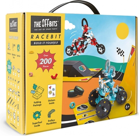 Nedeliteľnou súčasťou OffBits RaceBit je kompatibilita s každodennými predmetmi, čo dáva deťom príležitosť vytvárať svoje vlastné unikátne vynálezy za použitia obvyklých materiálov. Obal tejto sady sa navyše premení na hraciu pretekársku dráhu, čo zvyšuje úroveň hry a zábavu detí na dlhé hodiny.