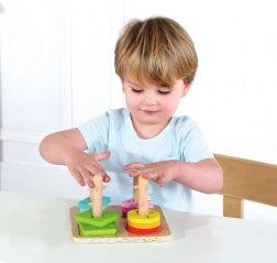 Pomocou tejto jednoduchej hračky môžu deti cvičiť svoju zručnosť a trpezlivosť, a zároveň sa učiť rozoznávať tvary a farby a základy počítania. Hračka je vyrobená z kvalitného FSC® dreva a je ideálna pre rozvoj schopností tých najmenších.