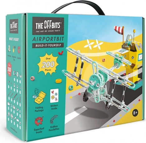 Objavte The OffBits AirportBit, stavebnicu, ktorá podporuje rozvoj jemnej motoriky, priestorovej predstavivosti a kreativity. Sedieť nebudete; táto sada ponúka dynamickú hru vďaka priloženému náradiu a stavebným dielcom.