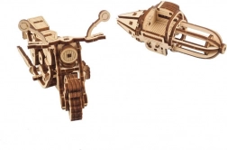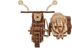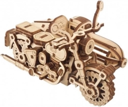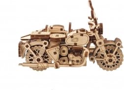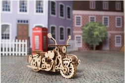 Poskladajte a rozhýbte motorku vďaka šikovnej konštrukcii prevodov a gumičkových prvkov – všetko čisto, len z dreva.