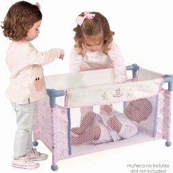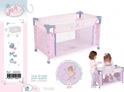 Cestovná postieľka pre bábiky Gala 2023 je súčasťou štýlovej ružovobielej kolekcie s malou gymnastkou, ktorá je novinkou roka 2023. Kolekcia ponúka kočiariky a iné doplnky pre malé slečny a ich bábiky.