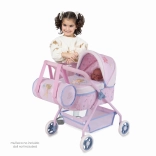 Štýlový detský kočík pre bábiky z kolekcie GALA nadchne jemným ružovo-bielym dizajnom, ľahkým a stabilným prevedením a jednoduchou manipuláciou. Súčasťou je ozdobná športová taška, úložný košík a kryt vaničky. Ideálna výška rukoväte 56 cm pre malé slečny od 3 rokov.