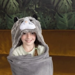 Táto dizajnová detská deka kombinuje pohodlie, zábavu a praktickosť. Je ušitá zo super mäkkého flísu, ktorý láka k zababušeniu a poskytuje príjemné teplo. Vďaka kapucni a labkovým vreckám sa deka mení na zábavný doplnok na hranie a relax, ktorý môže deťom navodiť pocit bezpečia.