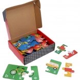 Vyrobené z ekologických materiálov, tento produkt nielen rozširuje slovnú zásobu, ale taktiež rozvíja poznávacie schopnosti a sústredenie. Puzzle sú vhodné aj pre samostatnú hru, podporujú logické myslenie a zlepšujú motoriku vašich detí. Začiatky v spojení s angličtinou nikdy neboli zábavnejšie!