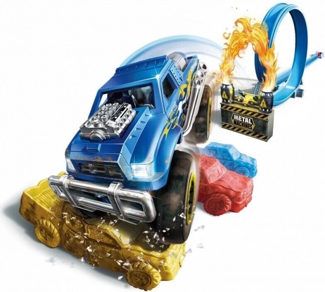 Užite si adrenalínové preteky s kaskadérskou dráhou s dĺžkou 2 m, ktorá vďaka výkonnému vystreľovaču vystrelí kovové autíčko do neuveriteľnej rýchlosti. Nechýba 360° slučka a rampa na skoky cez ostatné autá – ideálne pre malých pretekárov, ktorí milujú akciu a triky.