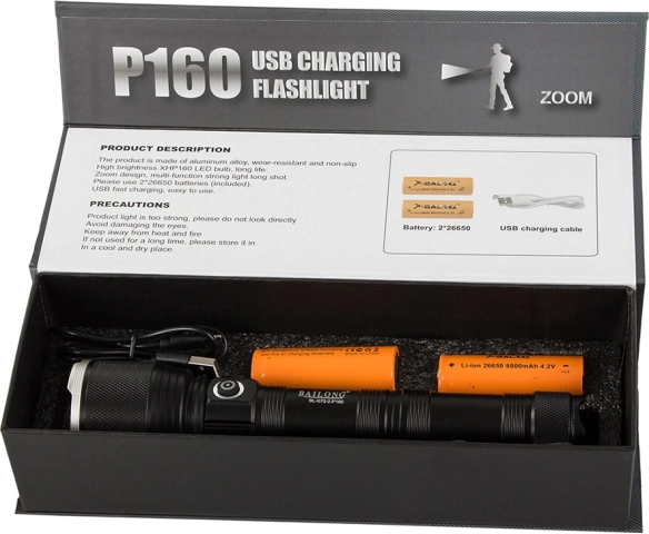 Táto baterka od renomovanej značky Bailong je ideálna pre uniformované zložky, armádu, poľovníkov, alebo pre domáce použitie. Je vyrobená z leteckého hliníka, čo zaisťuje odolnosť a nízku hmotnosť. Vďaka protišmykovému povrchu sa ľahko drží v ruke.