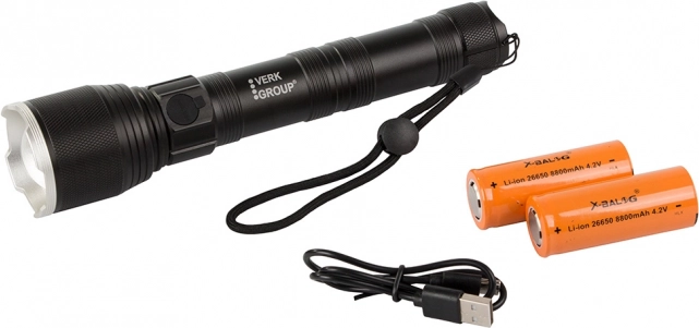 Nabíjanie batérií je jednoduché vďaka USB-C káblu a indikačné LED diódy vás informujú o stave nabitia. Balenie obsahuje baterku, dve dobíjacie batérie a šnúrku na zavesenie.