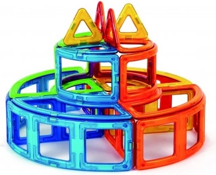 Magformers Creative je skutočnou lahôdkou pre nespútanú obrazotvornosť detí aj dospelých. Množstvo a farebná i tvarová rozmanitosť dielikov poskytuje priestor na zostavenie tých najodvážnejších konštrukcií. Vďaka vyššiemu podielu oboch druhov trojuholníkov je táto zostava vhodná aj na modelovanie jemnejších detailov. Na inšpiráciu vám poslúži skvelo spracovaný priložený booklet. Sada obsahuje 20 štvorcov, 12 trojuholníkov, 2 päťuholníky, 4 kosoštvorce, 8 dlhých trojuholníkov, 4 dvojité obdĺžniky, 8 výsekov, 4 lichobežníky, 8 dlhých oblúkov, 4 oblúky, 4 trojité obdĺžniky a ďalšie. Vhodné pre deti od 3 rokov. Počet dielikov: 90 Kreatívna magnetická stavebnica Magformers umožňuje zostavovať veľké množstvo trojrozmerných objektov pomocou dvojrozmerných plastových mnohouholníkov. Magformers precvičuje jemnú motoriku, podnecuje tvorivosť, učí deti farby a základné geometrické tvary. Rozmery dielikov a vhodne zvolené tvary zabezpečujú maximálnu možnú bezpečnosť hračky. Materiál, z ktorého je stavebnica vyrobená, spĺňa najprísnejšie hygienické a zdravotné kritériá. Dieliky sú dostatočne veľké, nedajú sa prehltnúť a sú prakticky nerozbitné. MAGFORMERS možno veľmi dobre kombinovať aj so známou magnetickou stavebnicou Geomag.