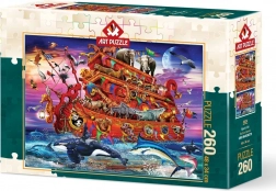 Užite si chvíle pohody s motívom Noemovej archy, ktorý poteší milovníkov zvierat aj rodinného skladania. Vďaka kvalitnému spracovaniu a presným výsekom do seba dieliky skvele zapadajú a výsledný obraz pôsobí živo a farebne. Puzzle s 260 dielikmi je skvelou voľbou na tréning sústredenia, trpezlivosti a jemnej motoriky.