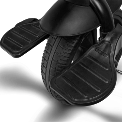 Veľké predné 10" a zadné 8" kolesá z kvalitného PU s dezénom tlmia nerovnosti, nevyžadujú hustenie a zabezpečujú tichú, stabilnú jazdu.