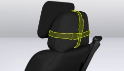 Jednoduché upevnenie k opierke hlavy pomocou nastaviteľného pásku a pracky. Kĺb 360 stupňov umožňuje ľubovoľné nastavenie polohy.