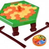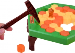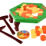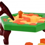 Hra rozvíja strategické myslenie a jemnú motoriku. Pri každom kole roztočíte koleso, ktoré určí, aké a koľko kociek máte odstrániť, aby nespadol dinosaurus.