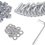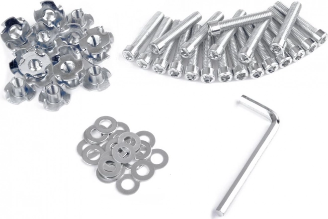 Montážna sada obsahuje všetky potrebné kovové komponenty vrátane skrutiek, podložiek a imbusového kľúča pre pevnú inštaláciu.