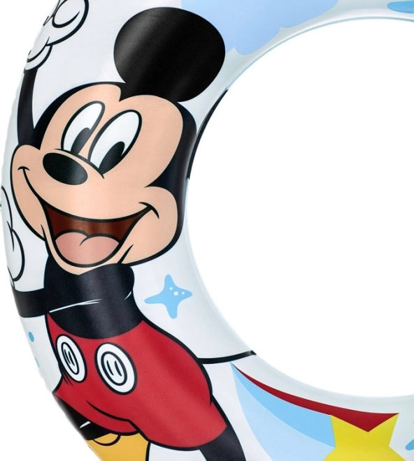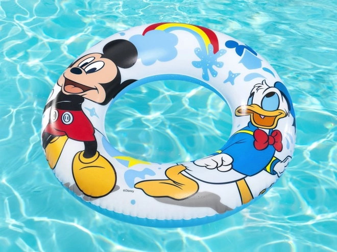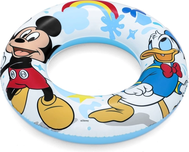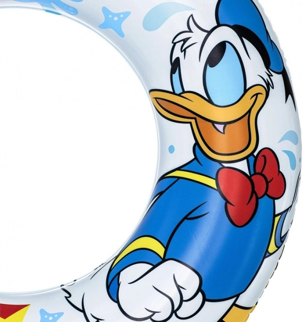 Nafukovací kruh je ozdobený motívmi Mickey Mouse a Kačera Donalda, čo pridáva zábavu a láka deti k plávaniu.
