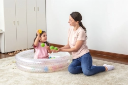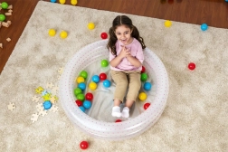 Súčasťou balenia je 50 loptičiek, ktoré podporujú senzorické vnímanie a jemnú motoriku a premenia bazénik na suchý hrací kútik.