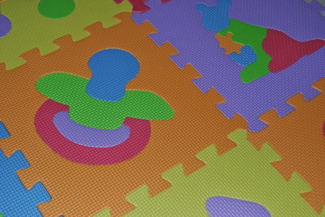 Penené puzzle s motívom rôznych hračiek pre bábätká s vyberateľnými dielikmi pre deti od 3 rokov.