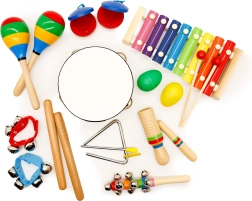 Táto všestranná hudobná sada ECOTOYS ponúka desať obľúbených rytmických nástrojov, s ktorými si užije zábavu celá rodina. Deti objavujú nové zvuky, melódie a tóny, rozvíjajú sluchové vnímanie a učia sa spolupracovať pri spoločnom hraní.