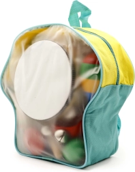 Set je navrhnutý s dôrazom na bezpečnosť a odolnosť. Každý kus má hladké hrany a je prispôsobený detským rúčkam. Praktický priehľadný batoh udrží všetky nástroje pokope a umožní vziať si ich kamkoľvek – na návštevu, do škôlky či na vystúpenie.