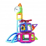Balenie s veľkým počtom základných aj oblých dielov a doplnkov. Stavebnica vhodná na väčšie architektonické stavby, autá, stroje, kolotoče, lietadlá, vhodná aj pre milovníkov zvierat, dinosaurov a imaginárnych nadprirodzených bytostí. Balenie je veľmi bohaté aj na príslušenstvo na stavbu domov a zámkov, ako sú rôzne druhy okien, tehlové výplne, balkóny a stromy. Na inšpiráciu slúži podrobne spracovaný booklet. Počet dielov: 115 20 trojuholníkov, 30 štvorcov, 2 päťuholníky, 2 šesťuholníky, 4 vysoké trojuholníky, 4 dvojité obdĺžniky, 1 trojitý obdĺžnik, 4 kosoštvorce, 4 lichobežníky, 4 výseky, 4 dlhé výseky, 1 vrtuľa, 2 jednokrídlové okná, 2 dvojkrídlové okná, 2 balkóny, 6 tehlových výplní, 2 delené okná a 2 stromy, 2 figúrky, 2 dvojkolieska, 2 oblúky, 2 dlhé oblúky a ďalšie príslušenstvo. Kreatívna magnetická stavebnica Magformers umožňuje zostavovať veľké množstvo trojrozmerných objektov pomocou dvojrozmerných plastových mnohouholníkov. Magformers precvičuje jemnú motoriku, podnecuje tvorivosť, učí deti farby a základné geometrické tvary. Rozmery dielov a vhodne zvolené tvary zabezpečujú maximálnu možnú bezpečnosť hračky. Materiál, z ktorého je stavebnica vyrobená, spĺňa najprísnejšie hygienické a zdravotné kritériá. Diely sú dostatočne veľké, nedajú sa prehltnúť a sú prakticky nerozbitné. MAGFORMERS možno veľmi dobre kombinovať aj so známou magnetickou stavebnicou Geomag. Ilustračné video magnetickej stavebnice Magformers Mastermind