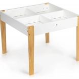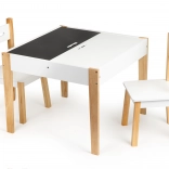 Po skončení hry môžu byť všetky hračky jednoducho usporiadané pod odnímateľnou doskou stola. Sada obsahuje dve pohodlné stoličky s borovicovými nohami.