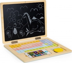 Drevený výukový laptop od ECO TOYS je multifunkčná hračka, ktorá ponúka 78 rôznych písmen a čísel na rozvoj detskej kreativity. Hrou sa deti učia základy písania, čítania a poznávania čísel. Konštrukcia je stabilná a bezpečná, bez ostrých hrán, čo zaručuje 100% bezpečnosť pre malé deti.