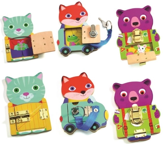 Objavte zábavnú sadu DJECO, ktorá deťom pomáha rozvíjať jemnú motoriku a každodenné zručnosti. Tri roztomilé zvieratká s rôznymi typmi zámkov podnecujú zvedavosť, koordináciu rúk a trpezlivosť. Ideálna didaktická hračka pre predškolákov od 3 rokov. Rozvoj motoriky, 3 druhy zámkov a hravé učenie v jednom.