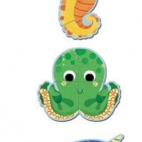 Detské obrysové puzzle s motívom troch podmorských zvieratiek – morského koníka, chobotnice a narvala. Puzzle rozvíjajú detskú predstavivosť, logické myslenie, jemnú motoriku a koordináciu oko-ruka. Vhodné pre deti od 2 rokov.