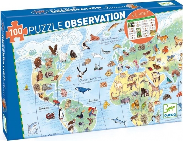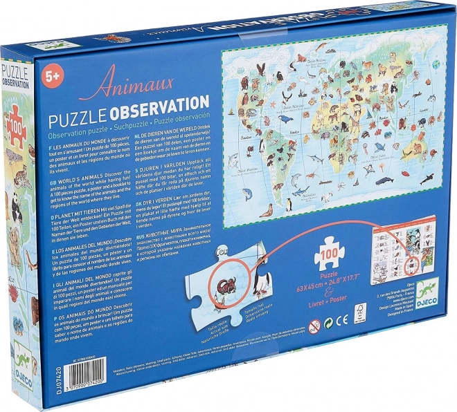 Vydajte sa na dobrodružnú cestu okolo sveta s puzzle DJECO Observation: zvieratá z celého sveta. Deti najprv zložia obrázok a potom môžu hľadať a pomenúvať jednotlivé zvieratá, čo z puzzle robí zábavnú aj vzdelávaciu aktivitu. Priložená brožúra v 10 jazykoch (nie v češtine/slovenčine) poslúži ako skvelá pomôcka na výučbu cudzích jazykov aj samostatné vyhľadávanie informácií.