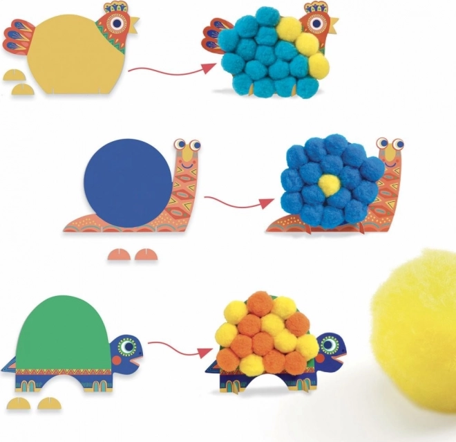 Objavte bambulkové tvorenie zvieratiek od Djeco! Táto aktivita umožňuje deťom rozvíjať jemnú motoriku a kreativitu. Sada obsahuje tri zvieratká s plochami, kam deti môžu ľahko a bezpečne pripevniť bambulky. Každé zvieratko má unikátny dizajn, ktorý po dokončení poslúži ako dekorácia alebo domáci maznáčik. Vďaka pribalenému brožúre s pokynmi je proces tvorenia intuitívny a zábavný.