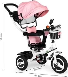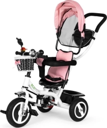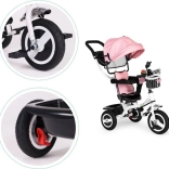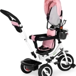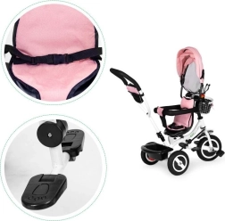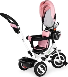 Trojkolka ECOTOYS ponúka mäkkú opierku a bezpečnostné pásy pre pohodlie a bezpečnosť vášho dieťaťa. Otočná strieška chráni pred dažďom a slnkom.