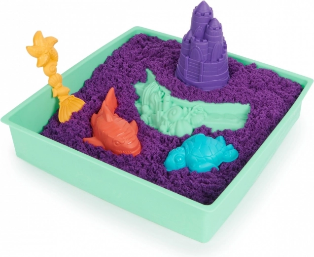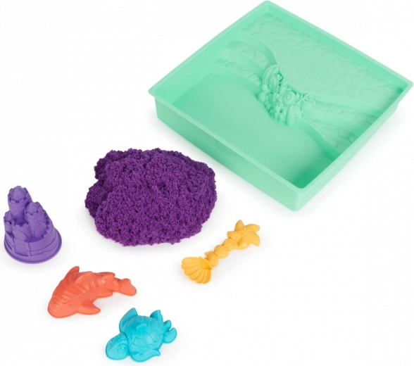 Súčasťou je 454 g fialového piesku, lopatka a rôzne formičky na hrady a morské zvieratká. Tác udrží všetko pohromade pre ľahké upratovanie.