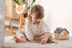 Vkladaním dielikov na správne miesto deti rozvíjajú rozpoznávanie tvarov, sústredenie aj koordináciu pohybov zábavnou formou.