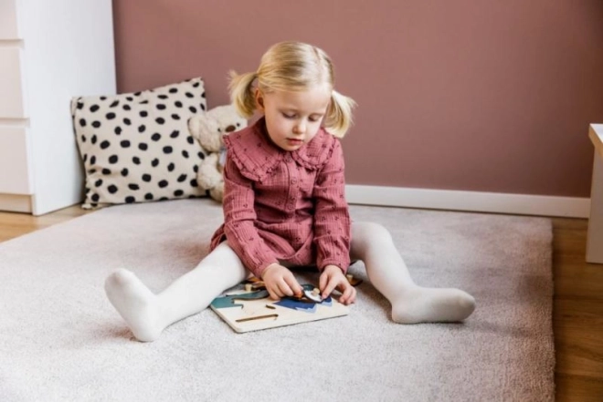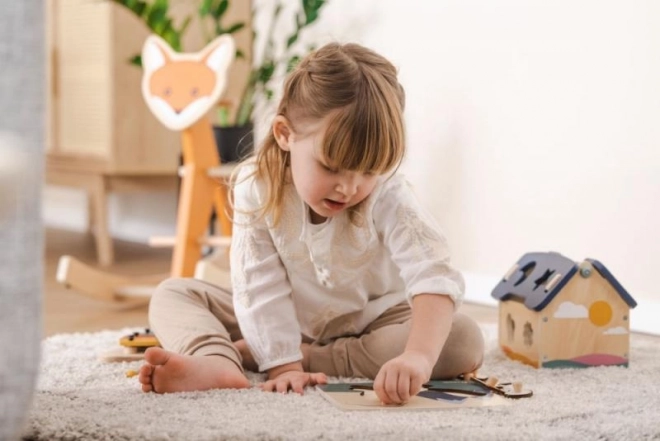 Pri vkladaní dielikov si deti precvičujú pamäť, sústredenie a riešenie problémov. Zaoblené hrany poskytujú bezpečie, zatiaľ čo kvalitné spracovanie garantuje dlhú životnosť hračky.