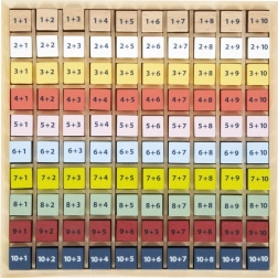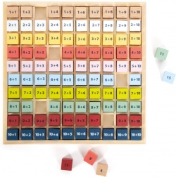 Každá kocka obsahuje jednoduchý príklad sčítania a z druhej strany správnu odpoveď. Deti tak môžu pracovať nezávisle, overovať si výsledky a posilňovať sebadôveru v matematike. Tabuľka je vyrobená z odolného 100% FSC® dreva, ktoré je šetrné k prírode a príjemné na dotyk.