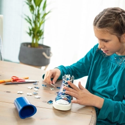 Pri skladaní si deti precvičia trpezlivosť, logické myslenie a jemnú motoriku. Hotová teniska sa premení na stojanček na ceruzky, pastelky a nožnice, takže radosť z diela pretrvá každý deň.