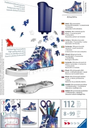 108 pevných dielikov s kozmickou grafikou sa skladá do atraktívneho tvaru tenisky. Skvelá výzva pre malých staviteľov aj začínajúcich nadšencov do 3D puzzle.