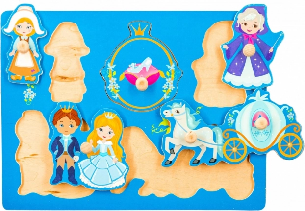 Objavte kúzelnú drevenú vkladačku s motívom Popolušky, ktorá je ideálna pre najmenších. Dieliky s praktickými úchytmi sa vkladajú do presne tvarovaných otvorov na drevenej doske. Sada obsahuje 5 pevných dielikov predstavujúcich postavy z rozprávky a pomáha rozvíjať jemnú motoriku, koordináciu oko–ruka a vizuálnu pamäť.