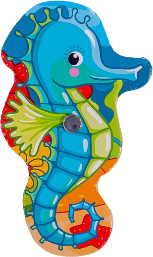 Drevená podložka s výrezmi, drevené dieliky – morské zvieratká, magnetický prút