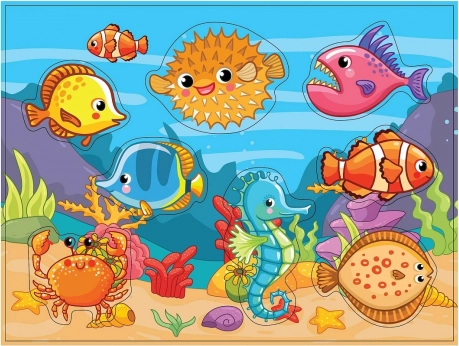 Každý tvar puzzlí zodpovedá svojmu výrezu. Deti si pri hre upevňujú znalosť farieb, tvarov a názvov živočíchov z podmorského sveta.